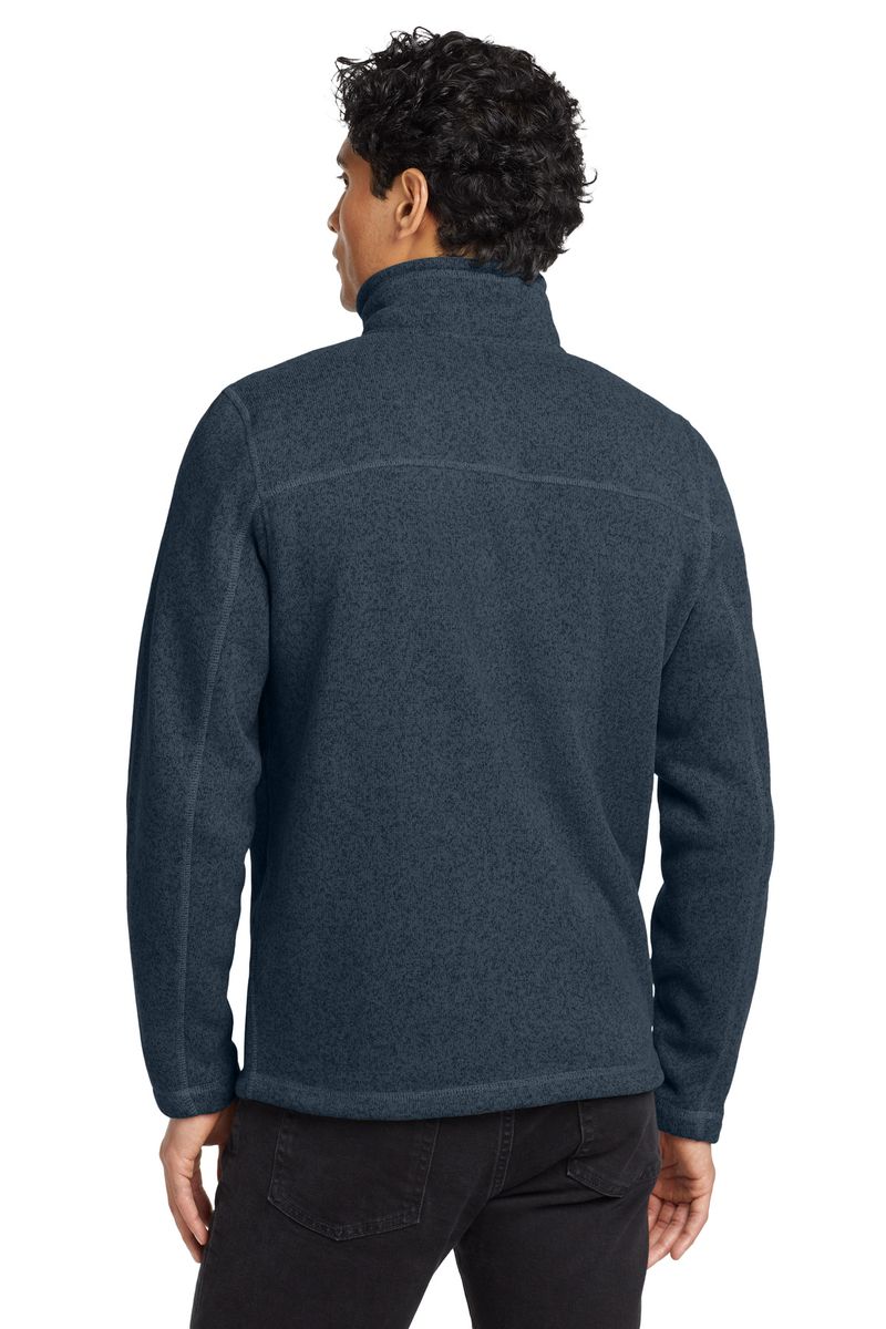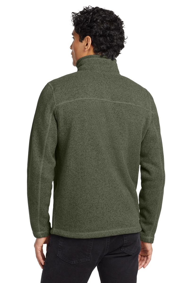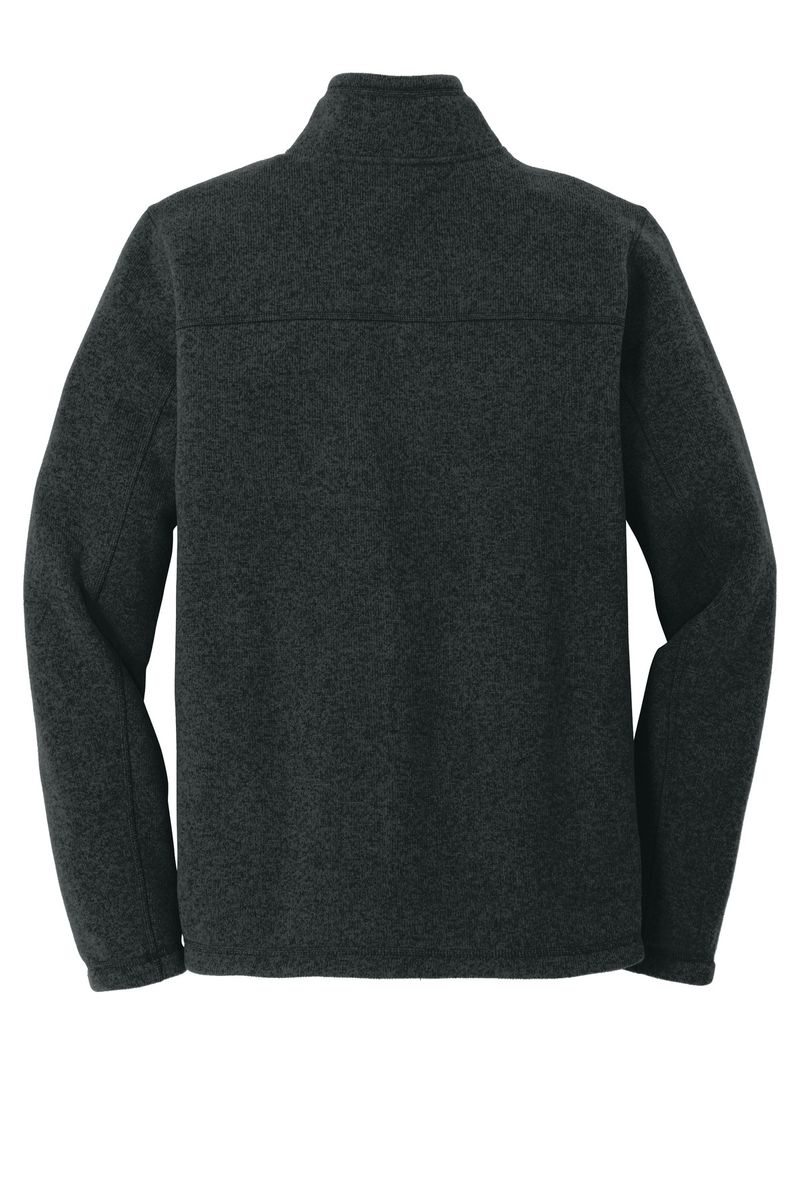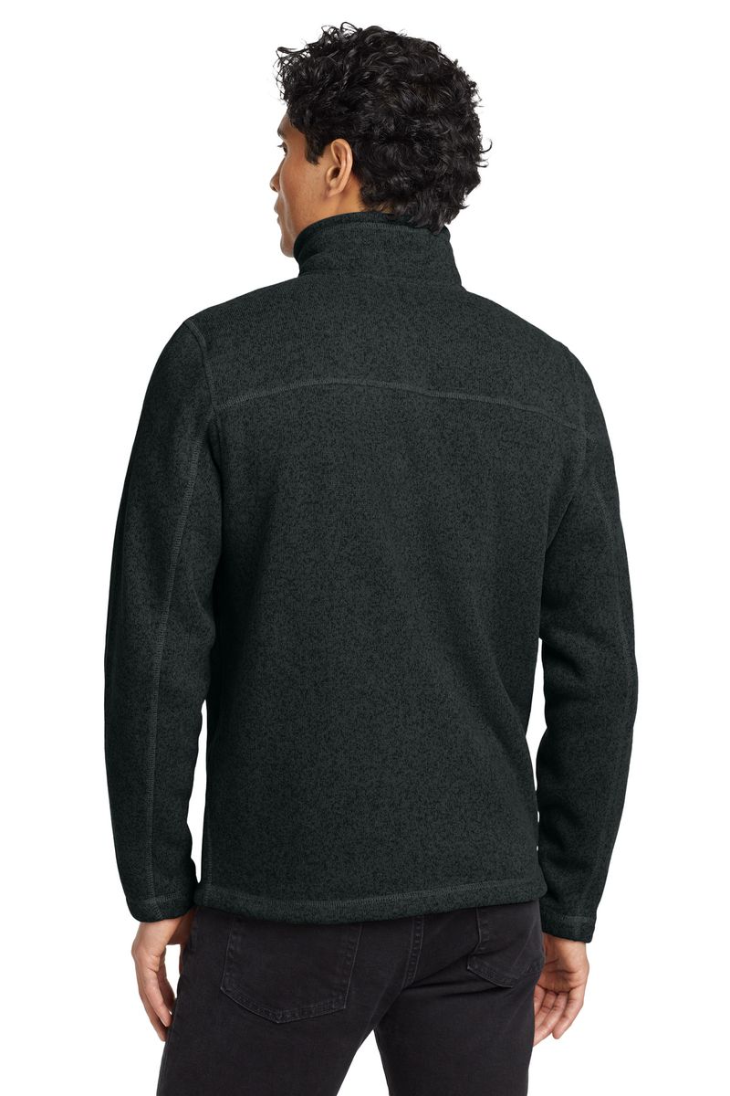 A soft, heathered tone adds casual appeal to the heavyweight, sweater-knit fleece jacket that's warm, yet breathable, on the trails.