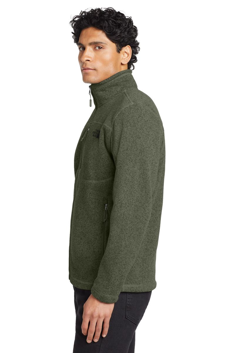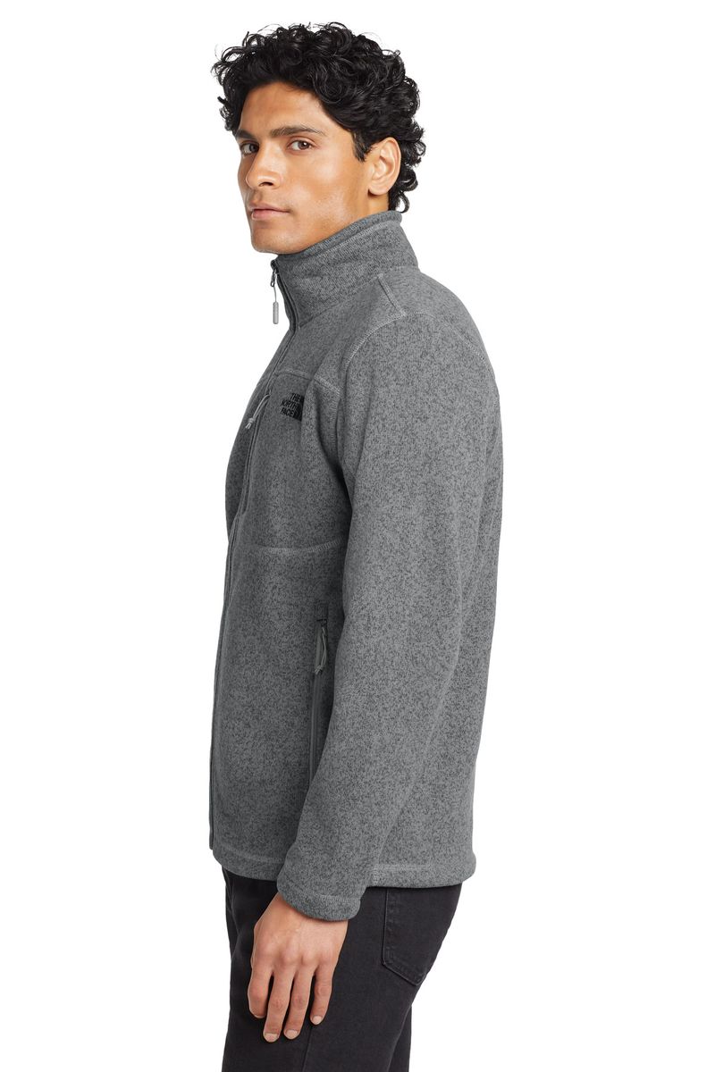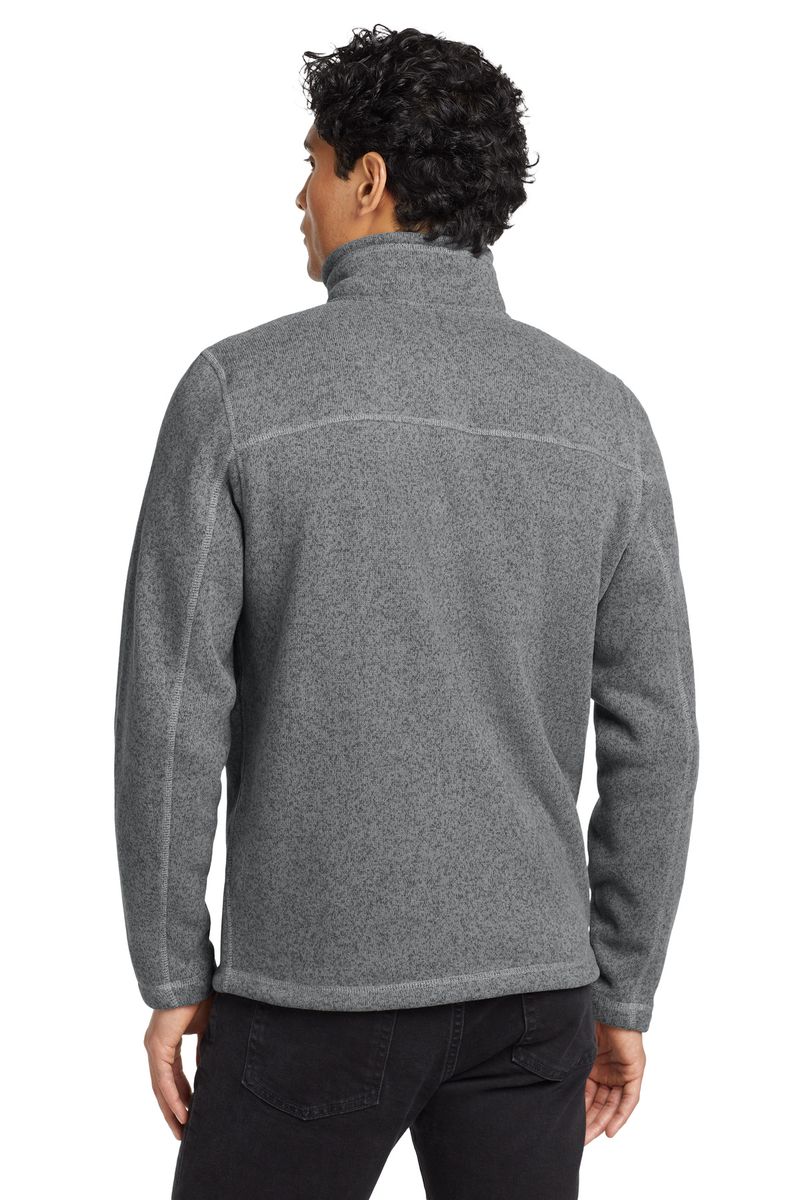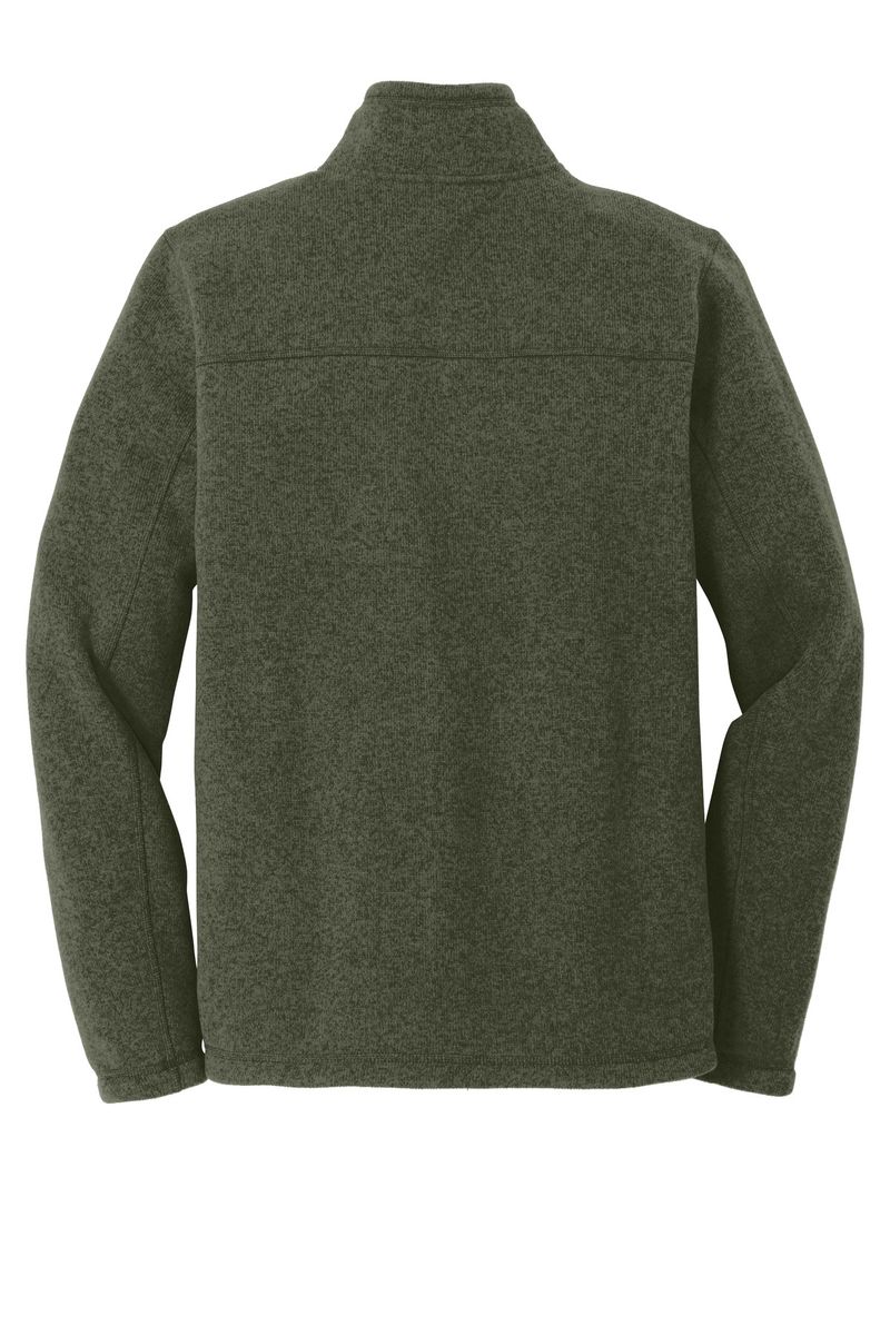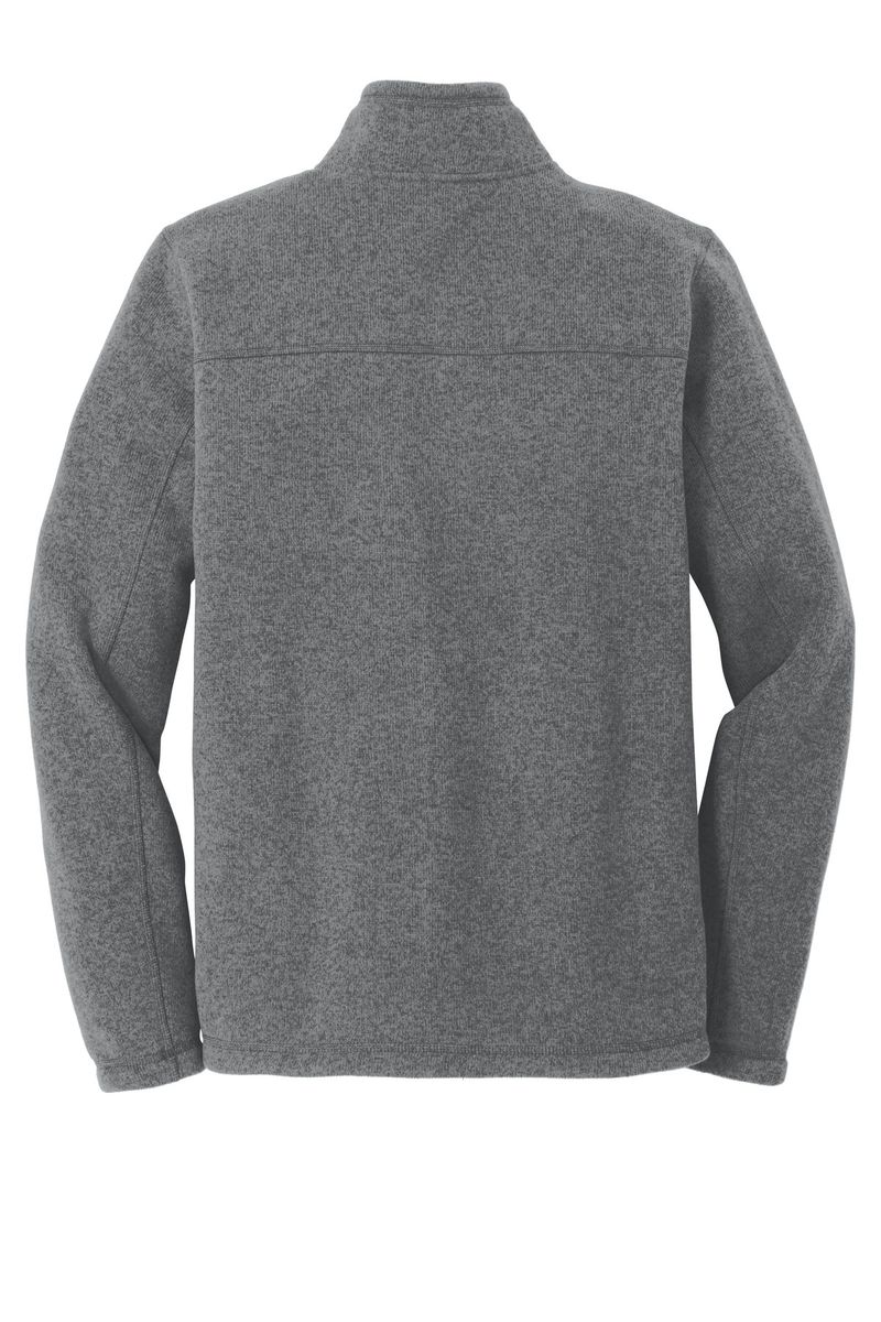 A soft, heathered tone adds casual appeal to the heavyweight, sweater-knit fleece jacket that's warm, yet breathable, on the trails.
