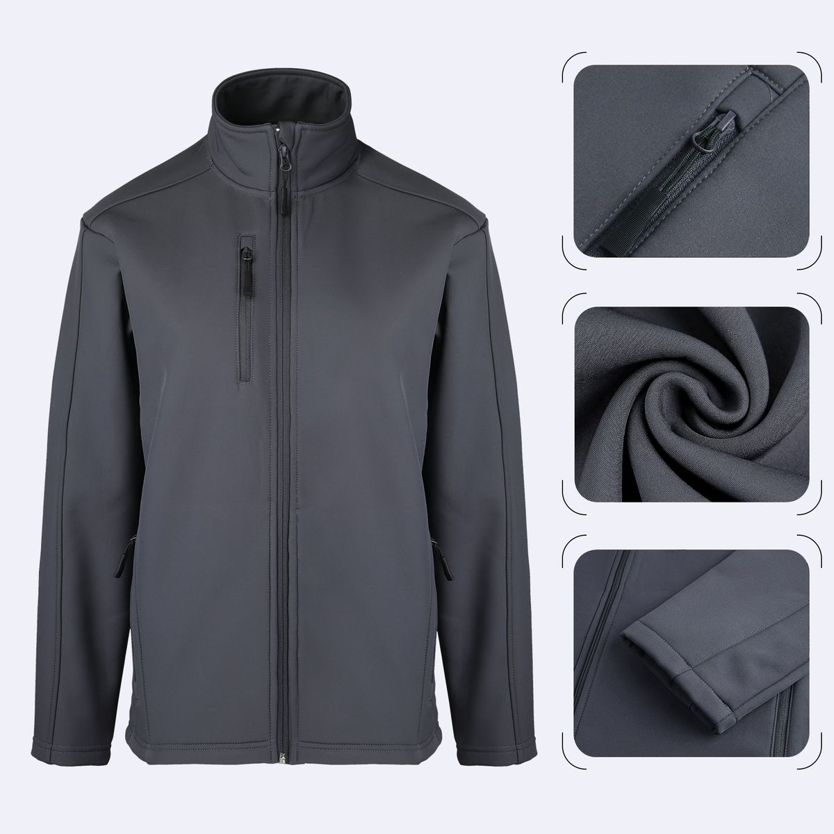 Enjoy active pursuits in this reliable, water-resistant, budget-friendly jacket with warm 10.3 OZ material that is durable, soft and breathable for casual, business, mountain, camping and travel. Made of a 100% polyester woven shell bonded to a water-resistant film insert and a 100% polyester microfleece lining. Fabric is 92/8 poly/spandex woven shell. Features a 3000MM fabric waterproof rating and 3000G/M2 fabric breathability rating, reverse coil zipper, and zippered chest pocket. Complies with CPSIA, Prop 65.